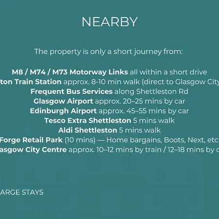 With self-catering amenities like a full kitchen, the accommodation also boasts a dining area where guests can relax and indulge in their meals. Free Parking - Sleeps 6 - 2 Bedrooms - Great Transport Links apartment is in close proximity to the nearest bus stop Shettleston Road / Wellshot Road.